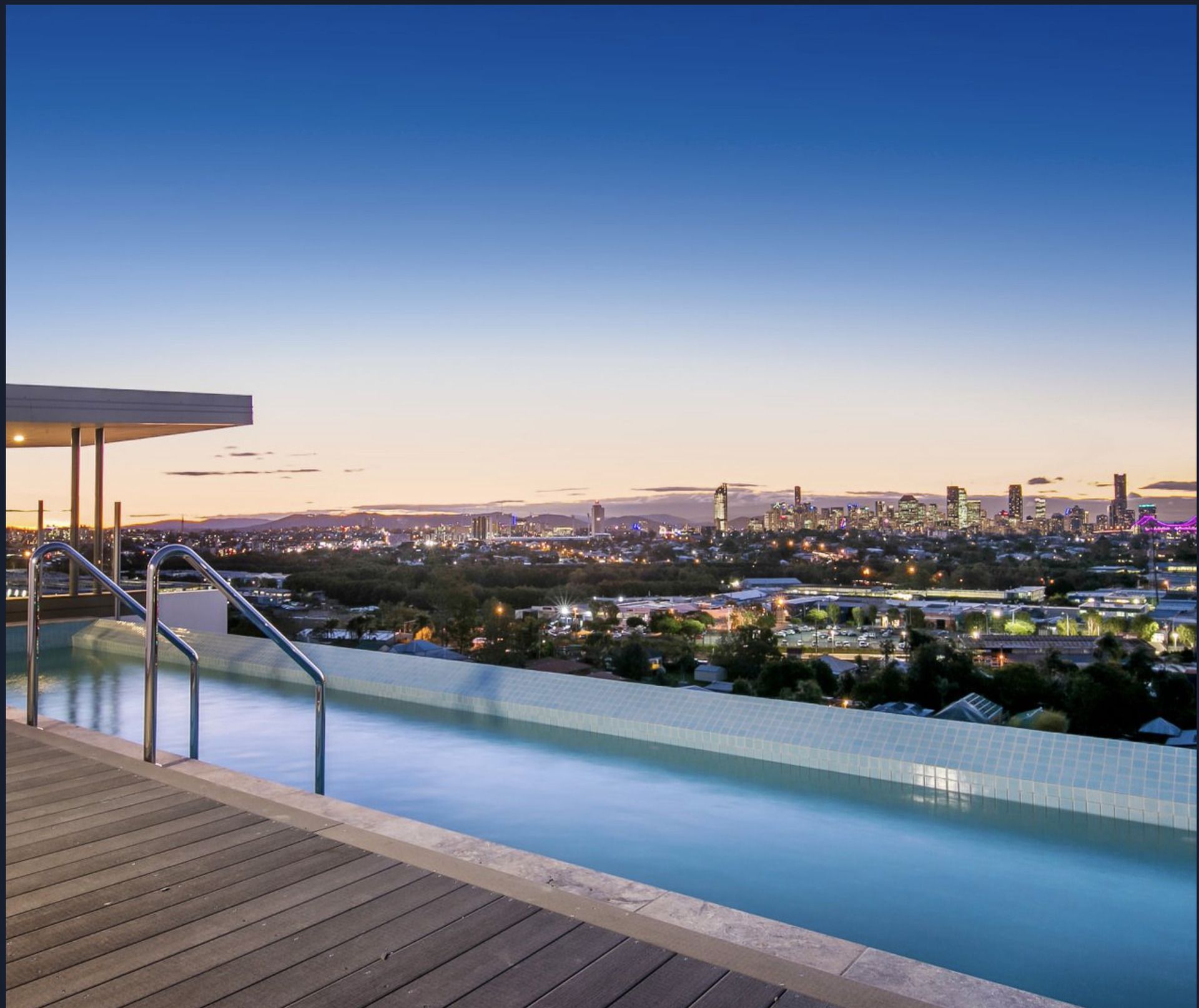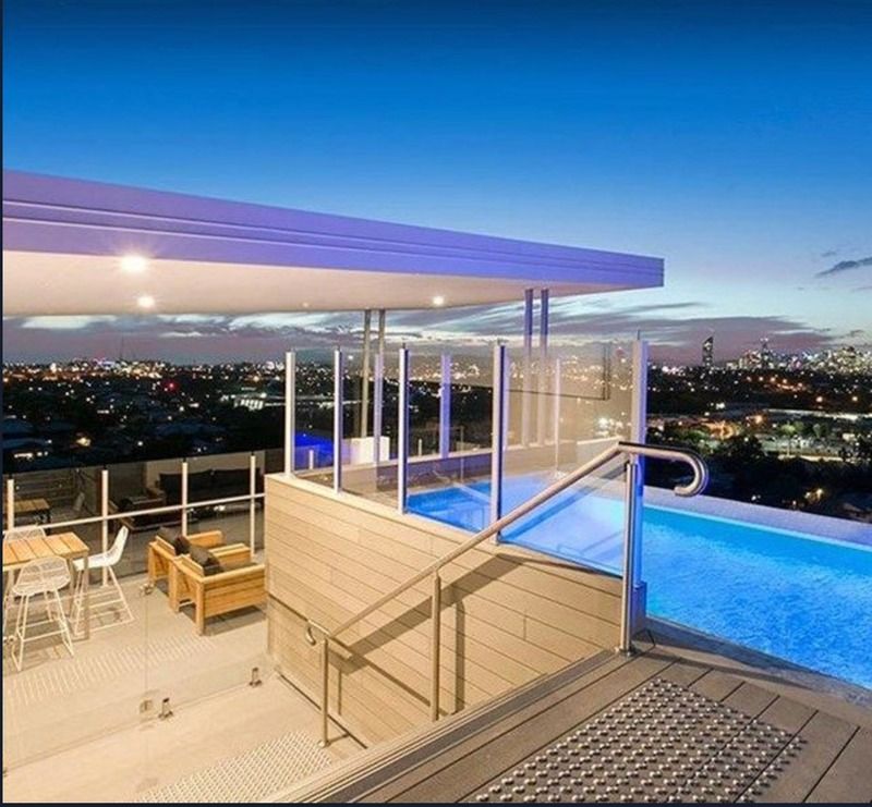 A very cool roof-top pool and entertainment area with spectacular views to the city.